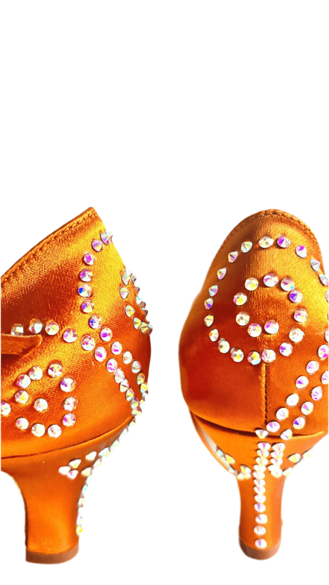 Step into the spotlight with our Aurora Crystal Latin Dance Heels – a dazzling fusion of elegance, comfort, and performance. Crafted in luxurious bronze satin and hand-embellished with high-shine crystals, these heels are designed to captivate on the dance floor.